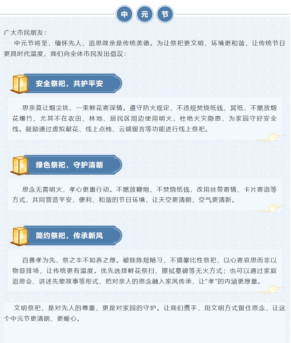 中元寄思,让“思念”与“文明”同行——中元节文明祭祀倡议书